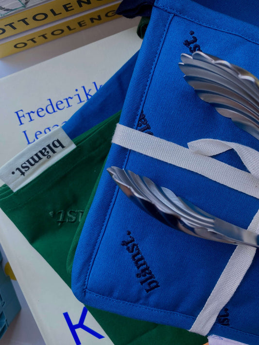Blåmst’s grydelapper i 2-pak er både funktionelle og æstetiske. De er fremstillet af 100% økologisk bomuld og fås i flotte farver som blå og grøn med vores broderede logo. Perfekte til varme gryder eller som en elegant detalje på bordet. Kombinér med vores stofservietter eller viskestykker for et harmonisk køkken. Se også vores brødkurve for mere inspiration.