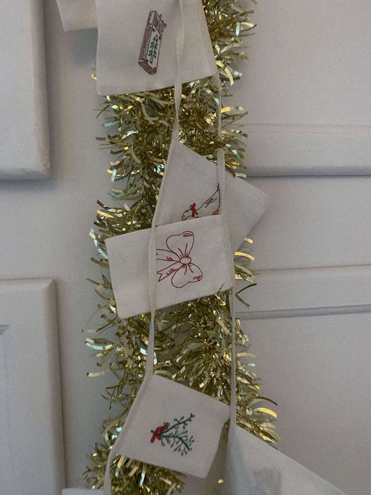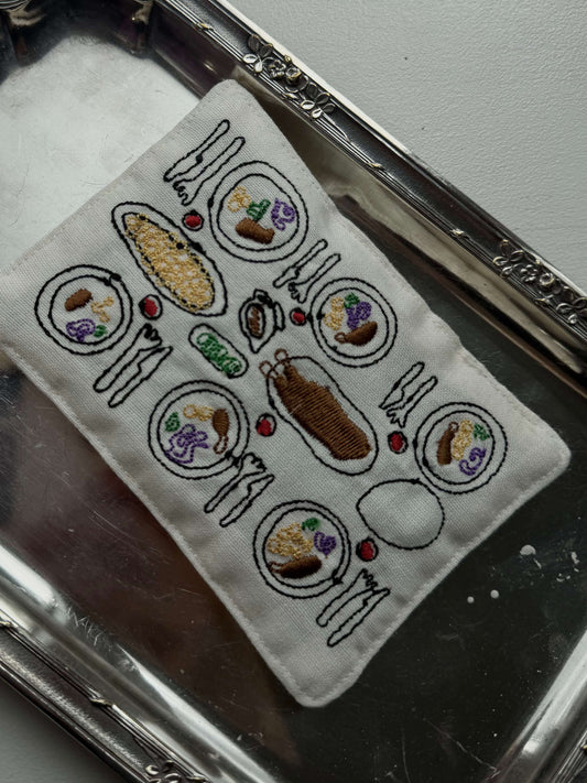 Julepynt – Polstret ornament med broderet julebord