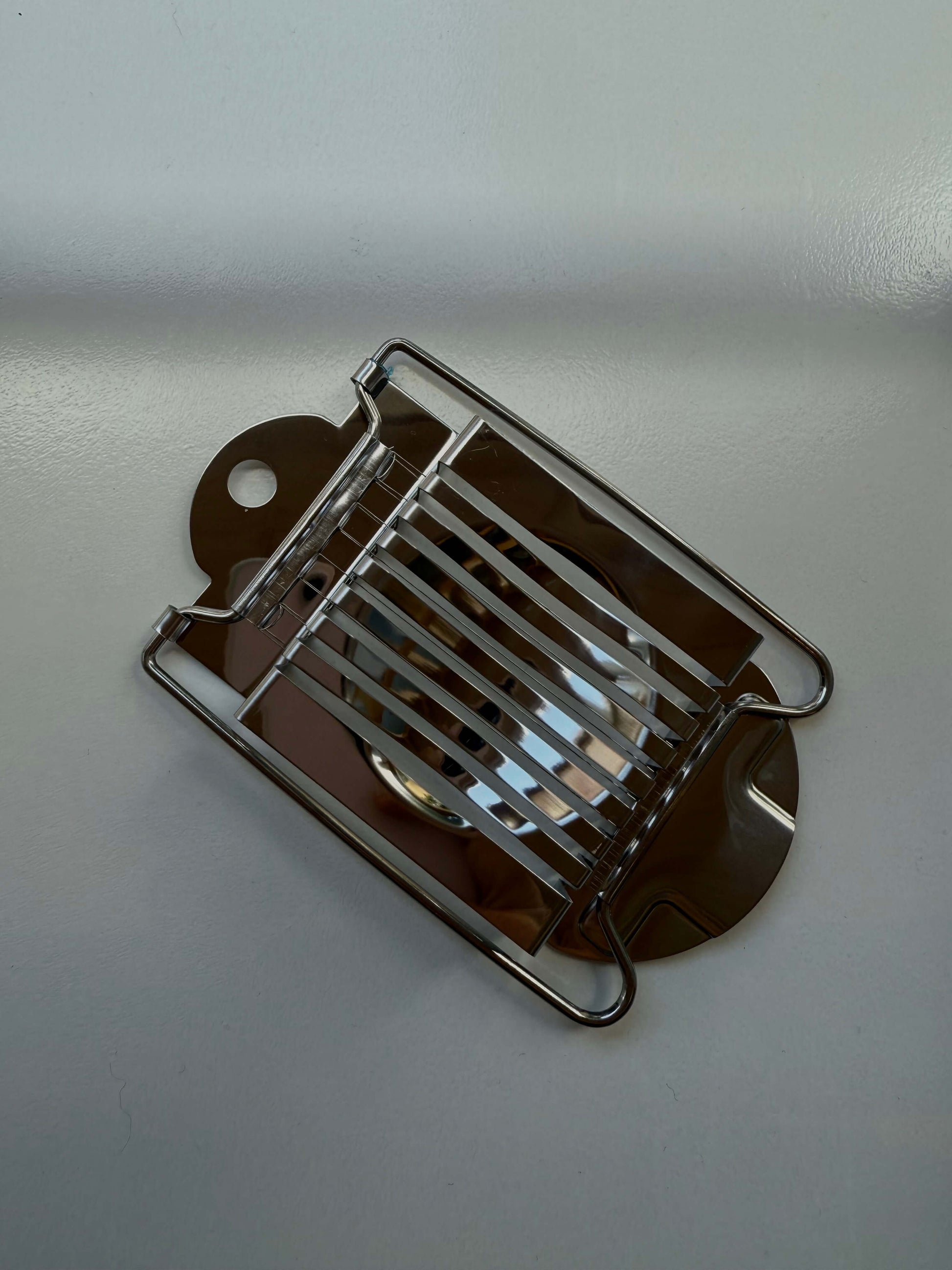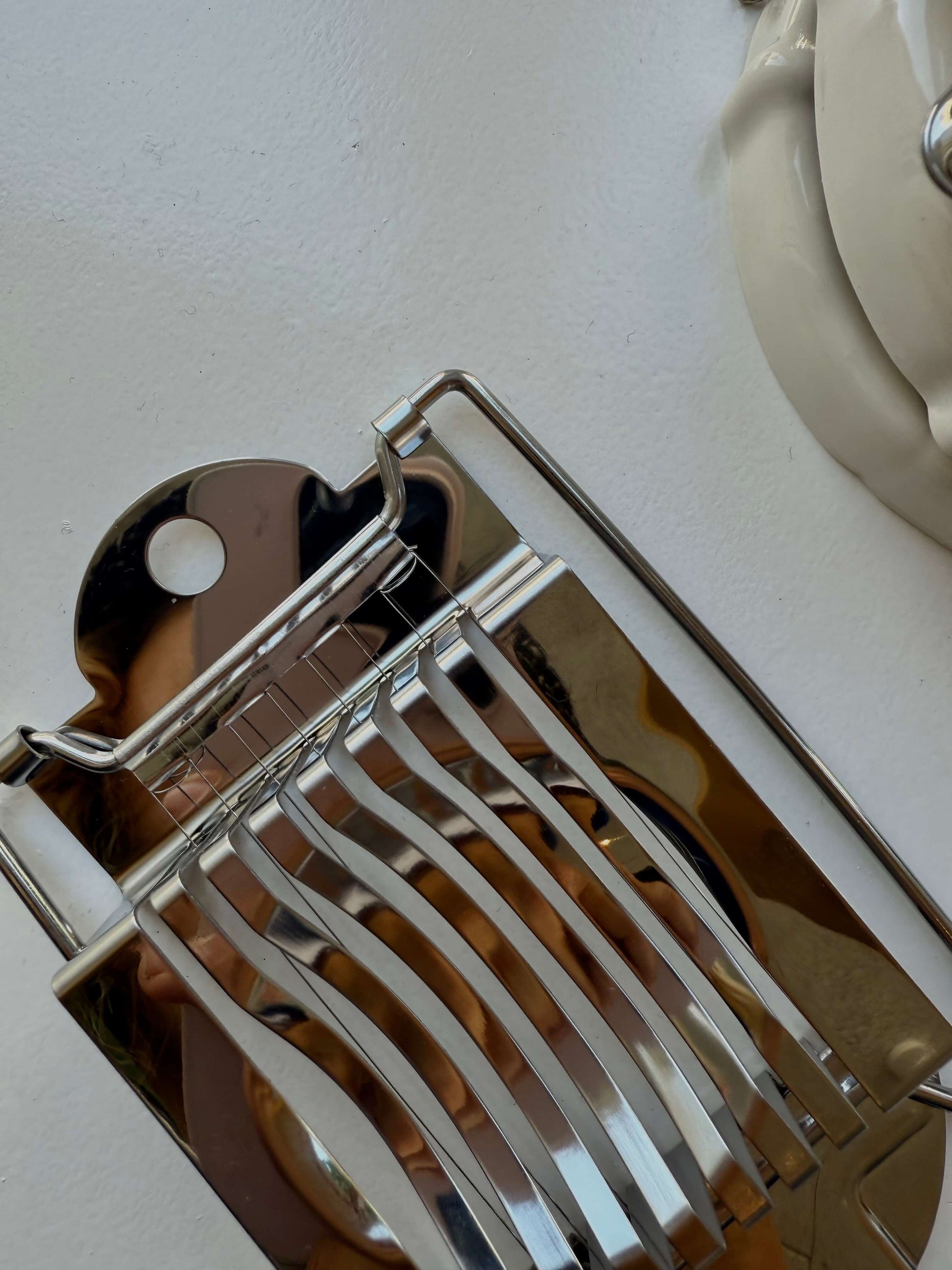 Skær dine æg i perfekte skiver med denne æggedeler i rustfrit stål. Den er både funktionel og æstetisk – et lille redskab, du gerne vil have hængende fremme i køkkenet.