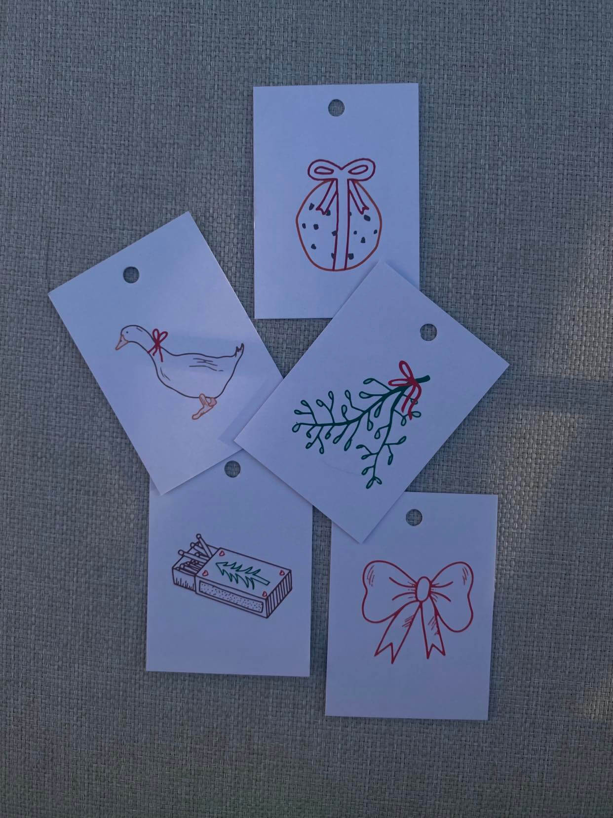 Fine pakker med til/fra kort med håndtegnede motiver 💌 Hver pakke indeholder 5 kort med fem forskellige motiver.