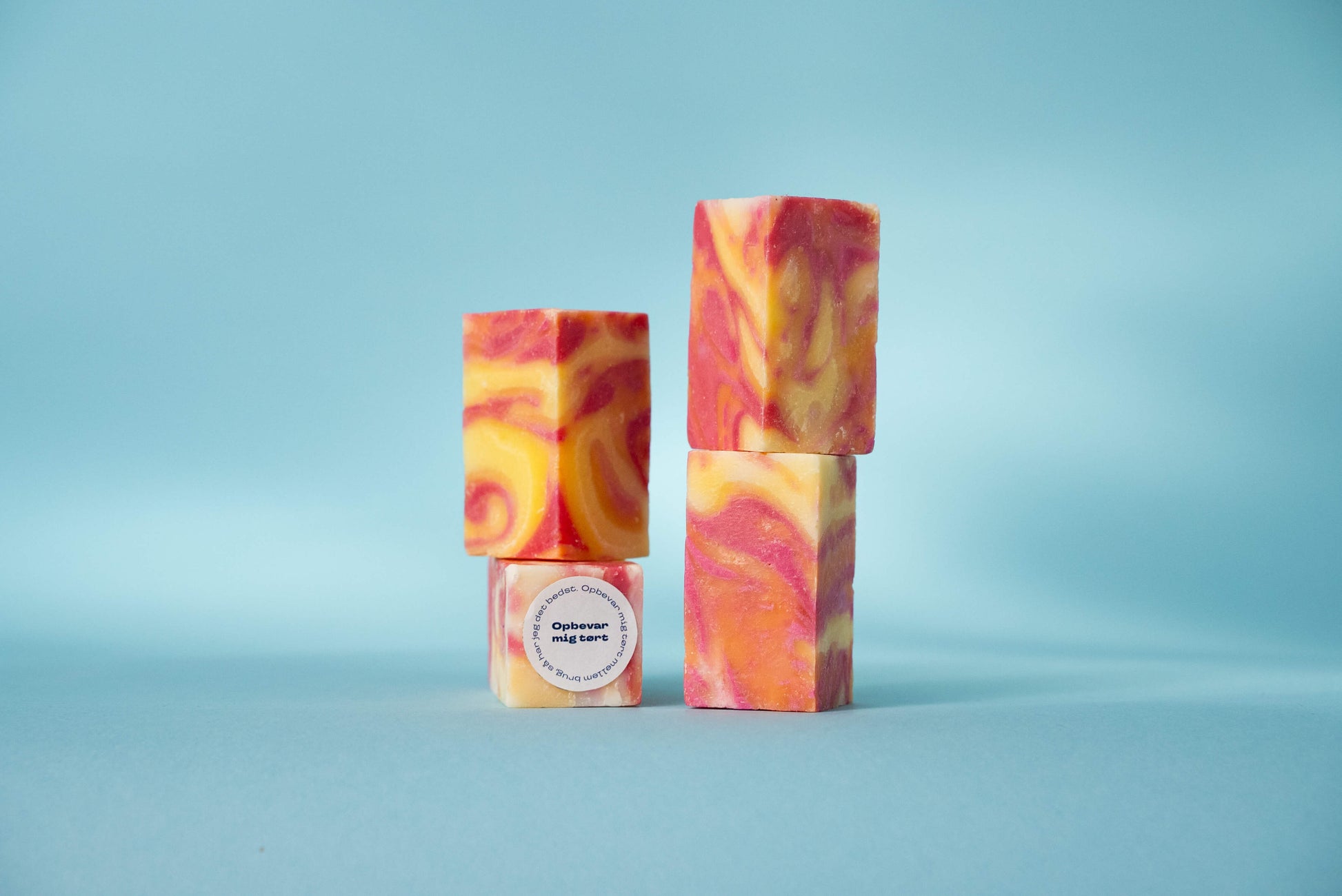 Koldrørt krops- og håndsæbe med kokos- og blodappelsinolie (økologisk og vegansk), rensende og forfriskende. Håndlavet i Danmark.