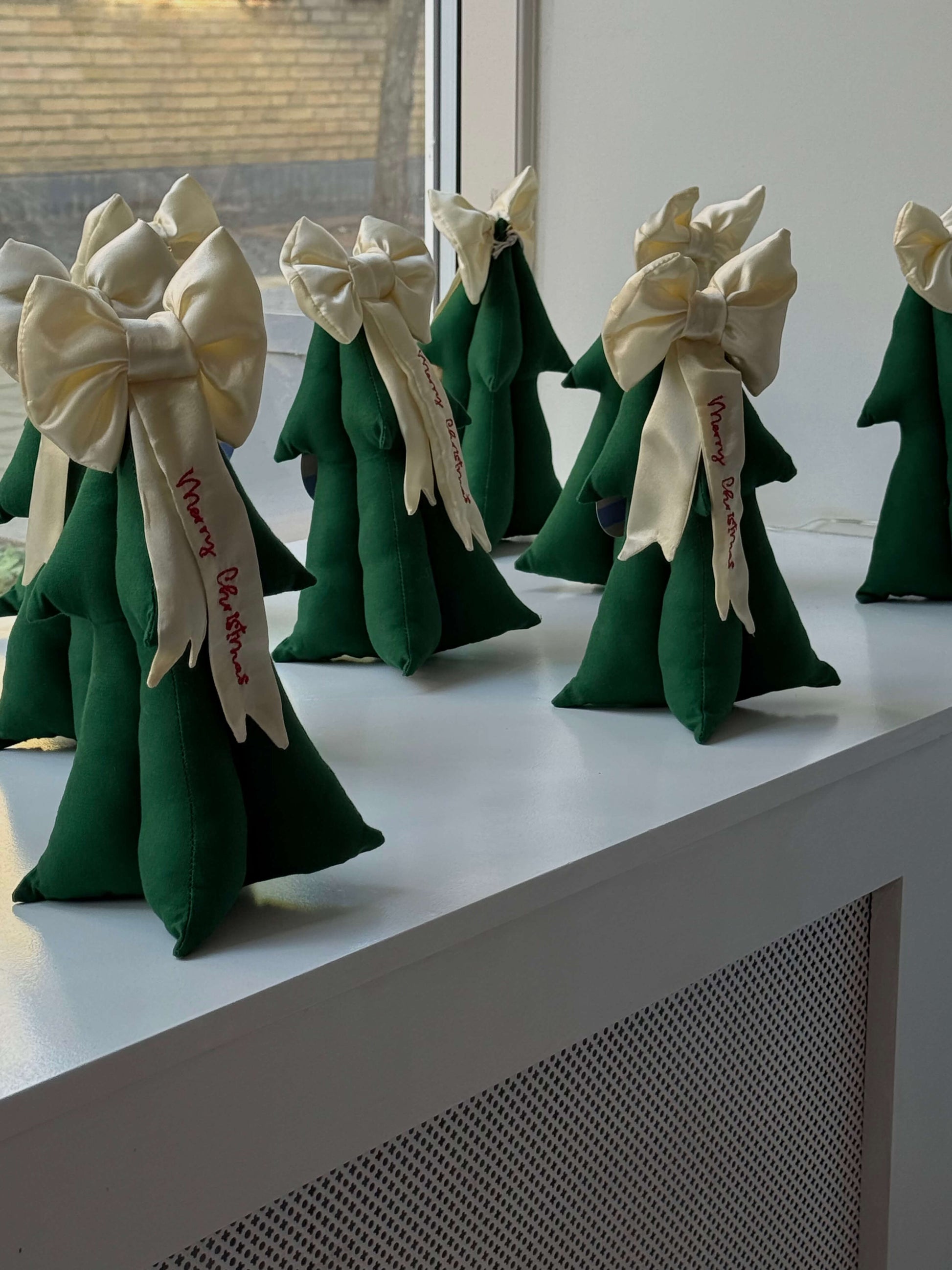Polstret juletræ med satin-sløjfe og “Merry Christmas”-broderi 🎄✨