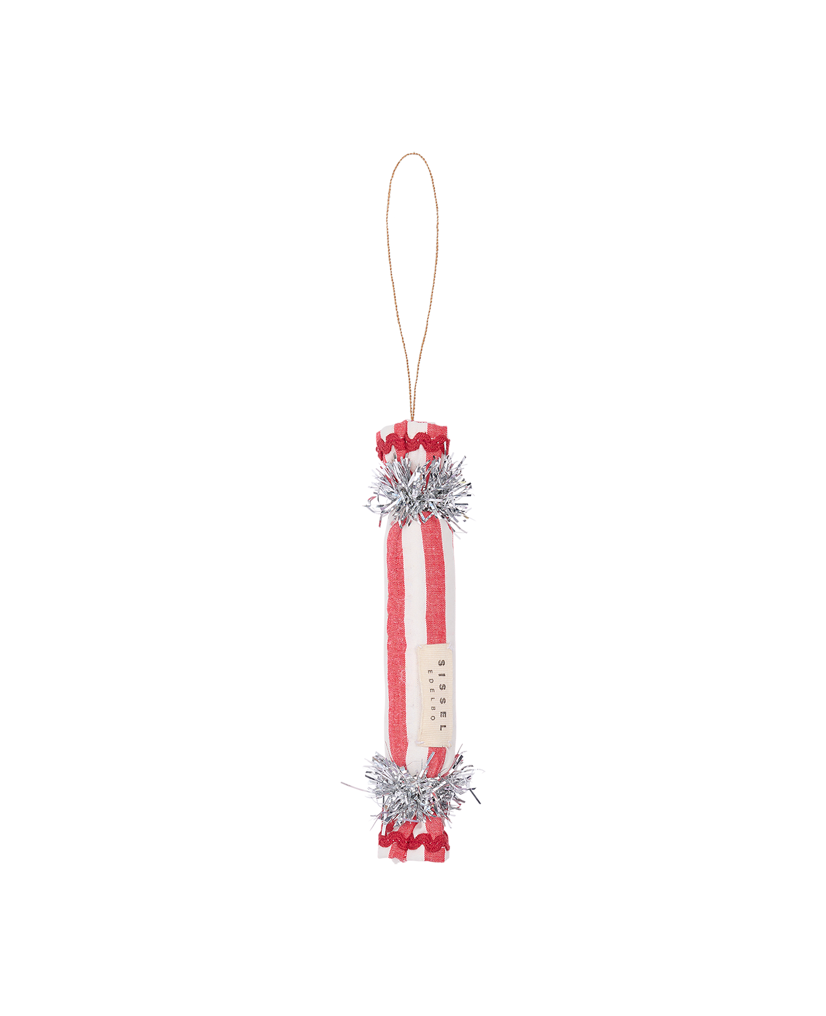 Crackers Ornament er lavet af rester af bomuld og er pyntet med et smukt bånd og glitrende sølv-lurex i enderne. Den er perfekt til at pynte det mest festlige juletræ og sprede julestemning i hele huset!