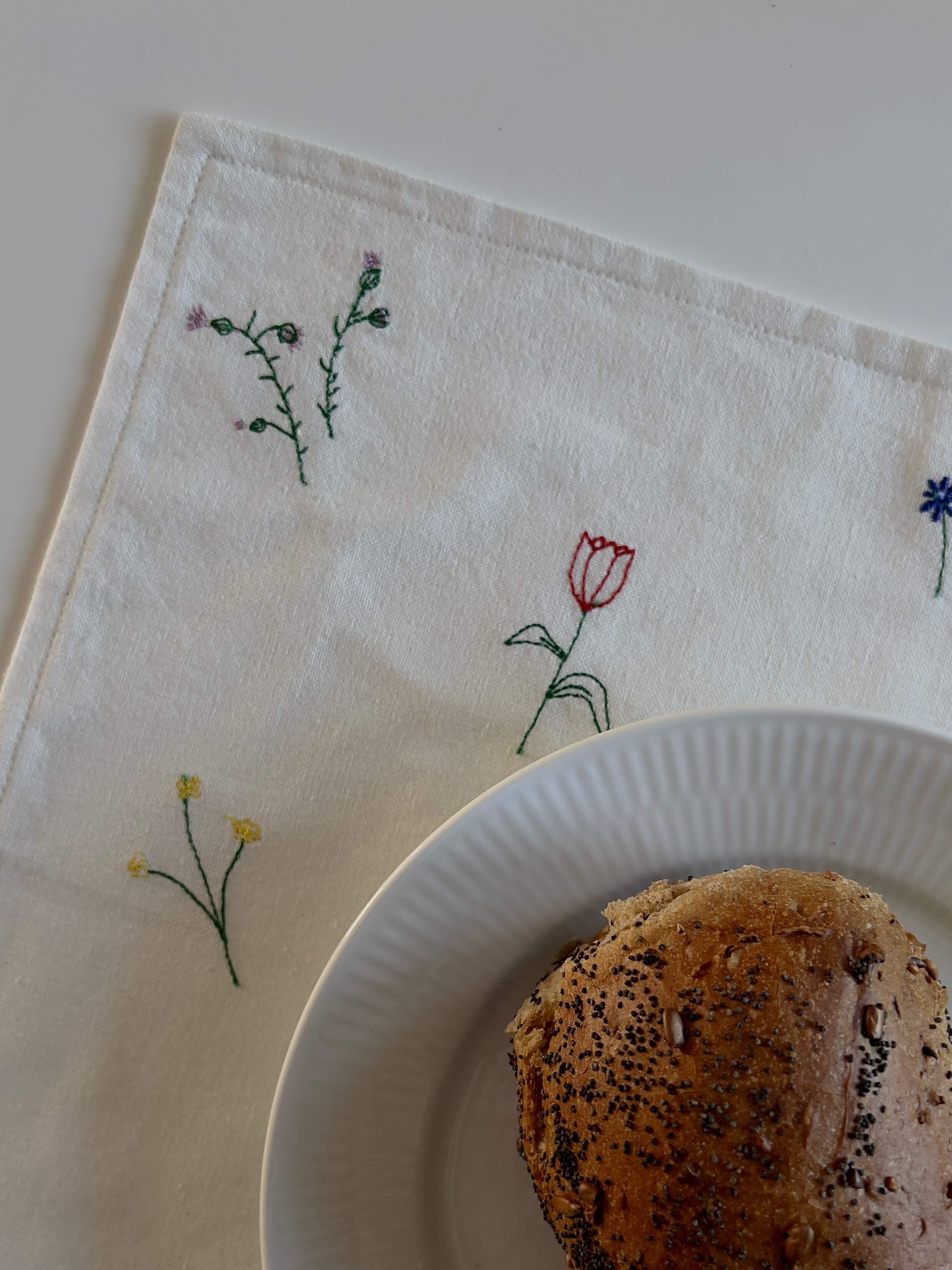 Bring følelsen af danske markblomster ind i dit hjem med vores smukke blomsterdug. Flower dugen er dekoreret med håndtegnede blomster, broderet med omhu og kærlighed til naturens enkle skønhed. Denne dug med blomster er designet til at skabe hygge og samvær omkring bordet – perfekt til både hverdagsbrug og særlige stunder.