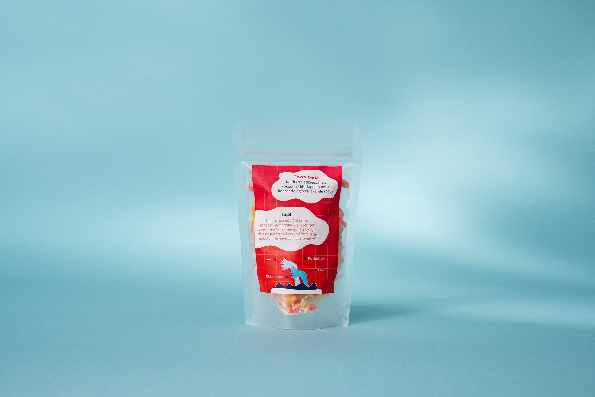 Hæld en lille skefuld sæbespåner i et lunt fodbad og hold fødderne i vandet i cirka 25 minutter. Dette virker rensende og blødgørende på fødderne, og giver dig et roligt og selvkærligt øjeblik.