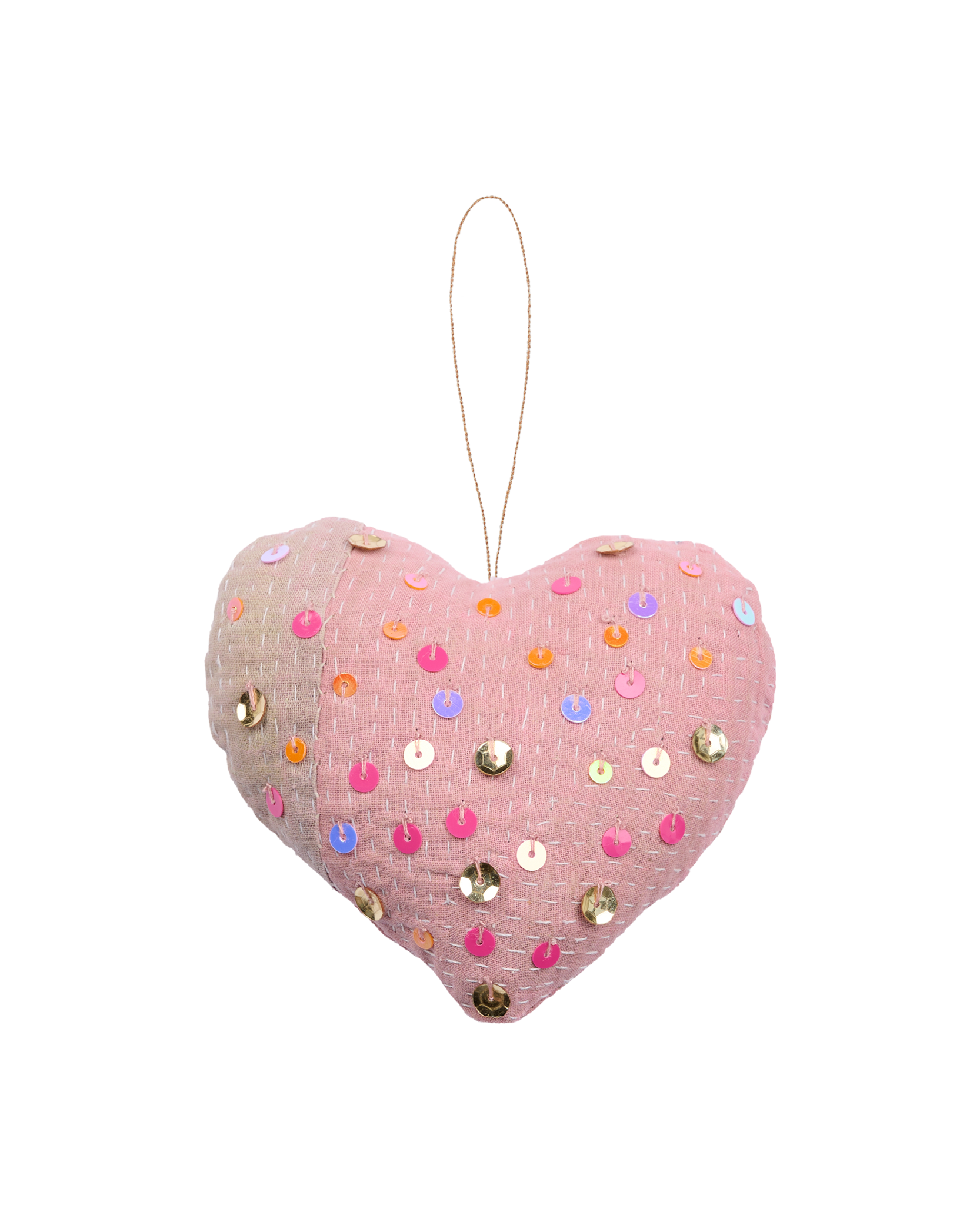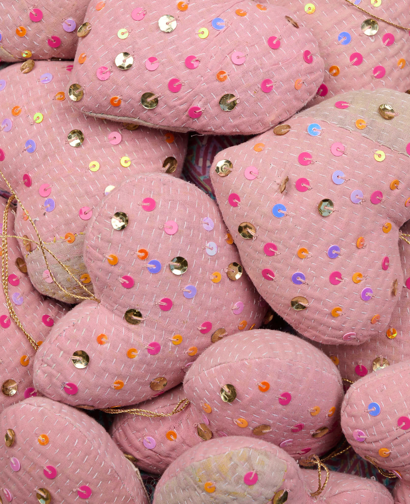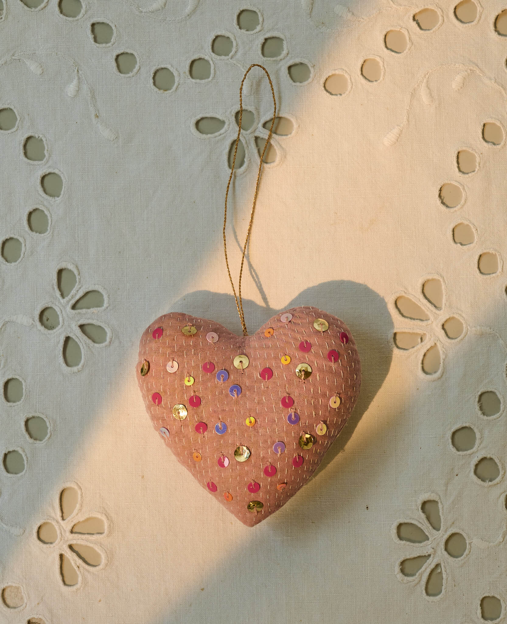 Smukke julehjerter fra Sissel Edelbo ✨ Alle produkterne er håndlavede og lavet af restmaterialer fra deres tøjproduktion 🌲