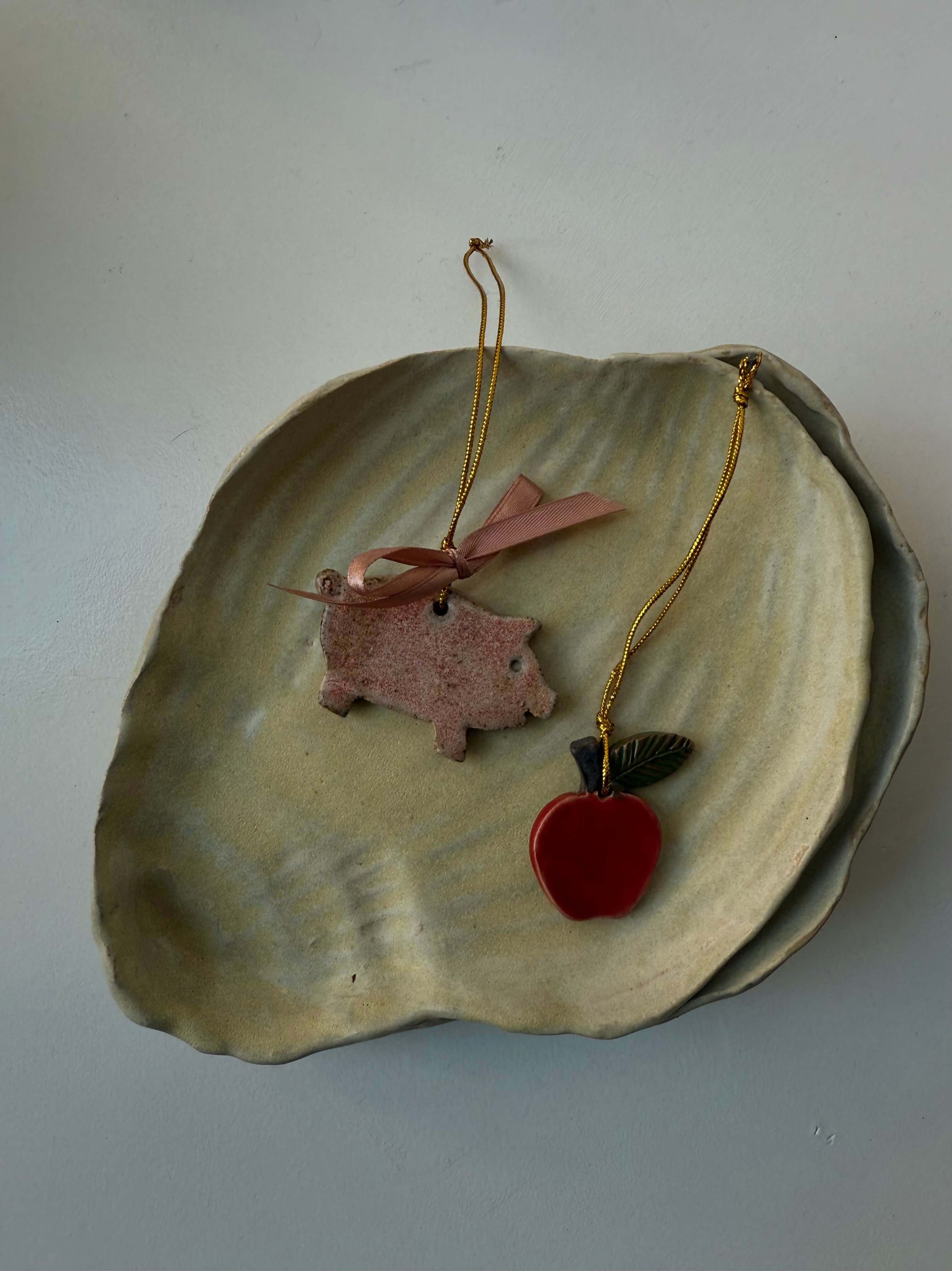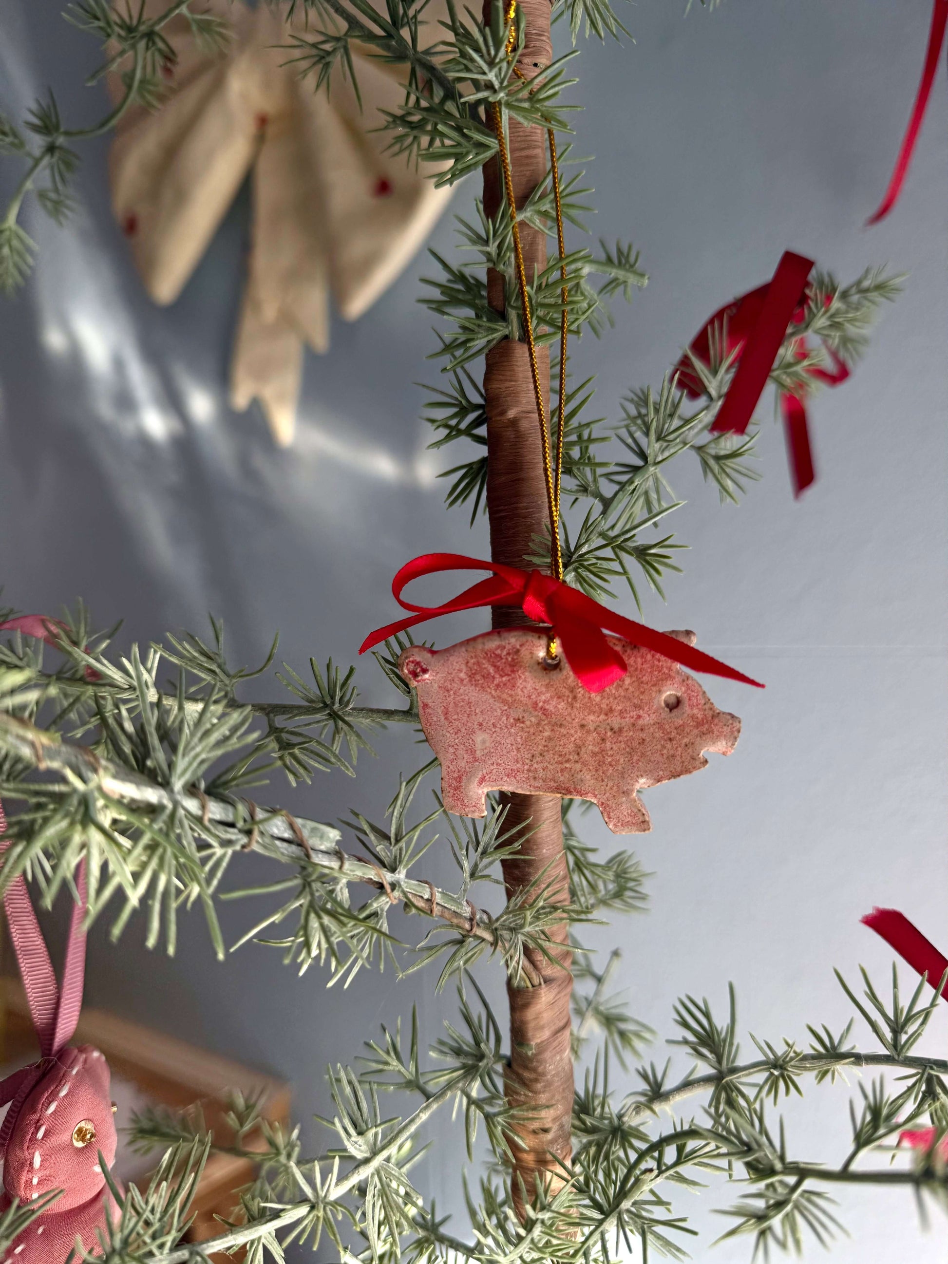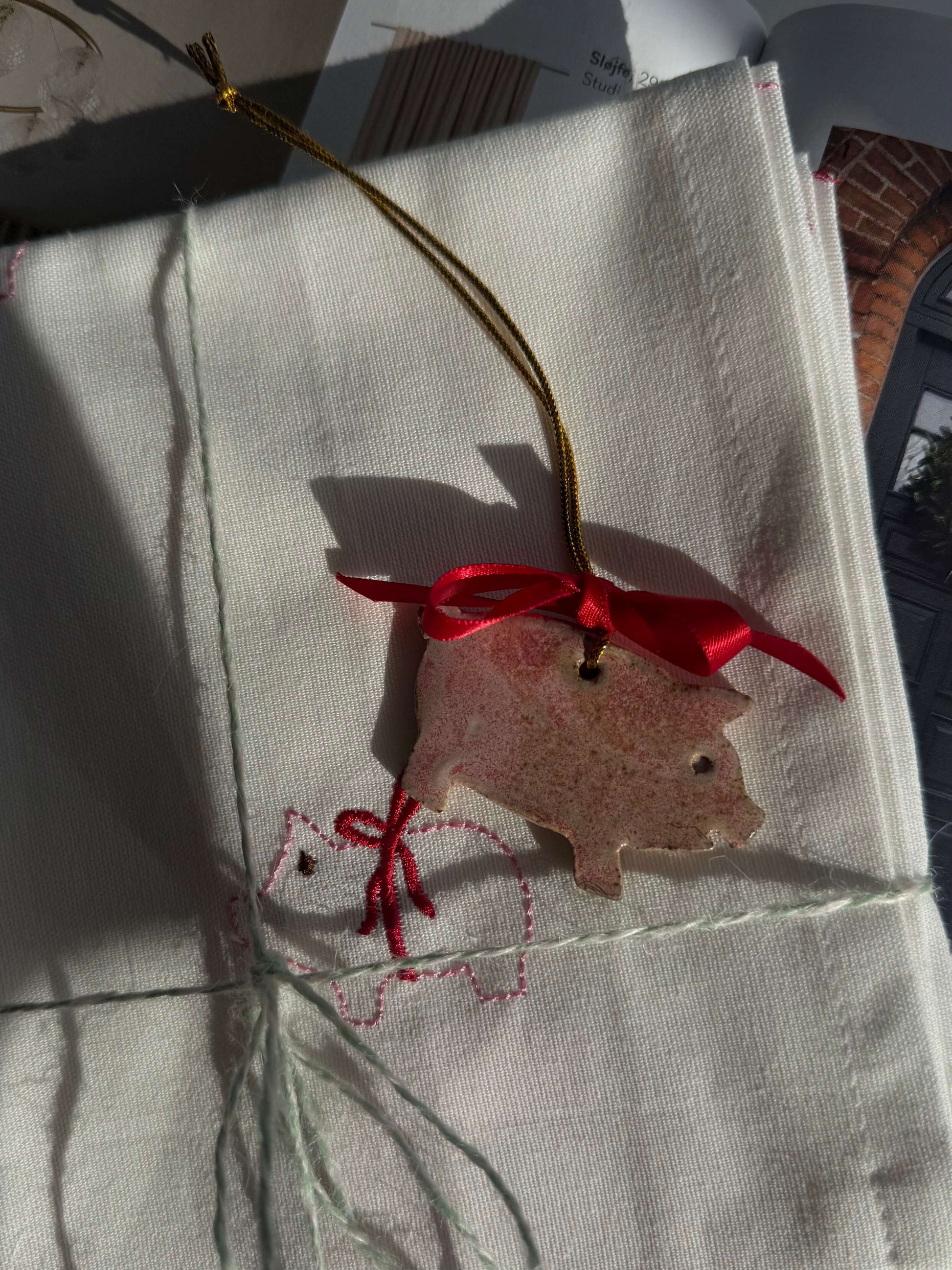 Smukke håndlavede keramik grise af den lokale kunstner Stine Orle. Alle grise er lavet af rester fra hendes keramik produktion. Da alt er håndlavet, vil der være variationer i størrelse, farve og udtryk. Kommer i to forskellige farver på båndet.