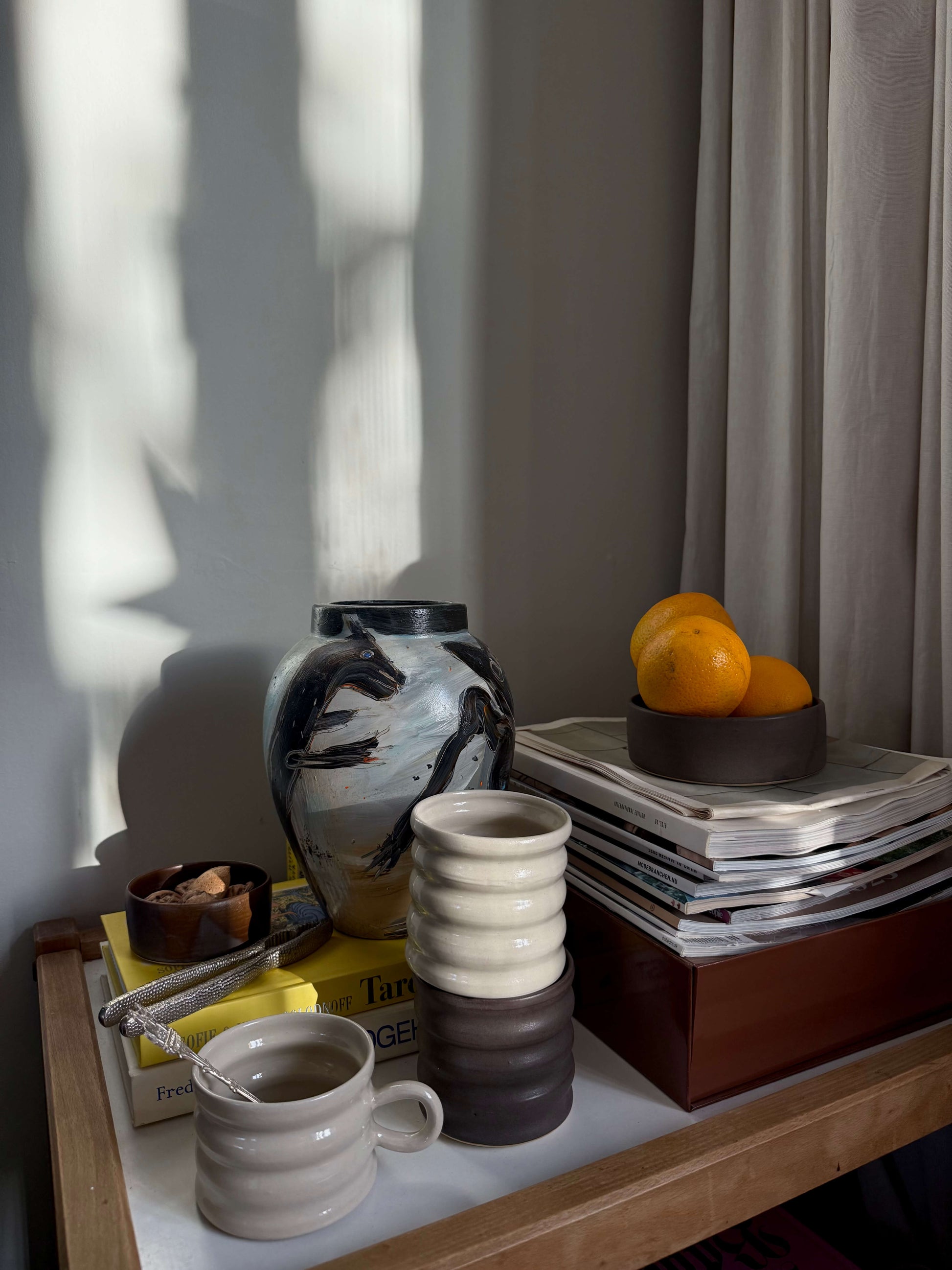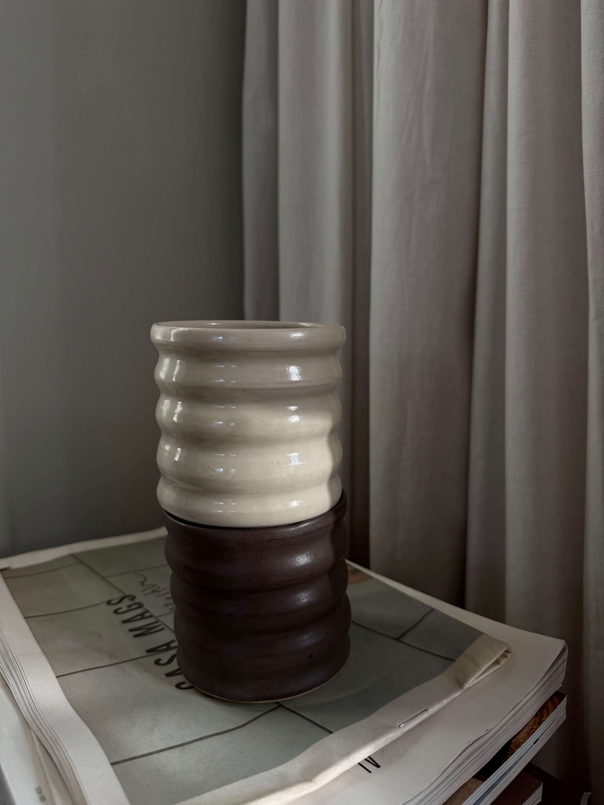 Rillerne skaber et godt greb omkring koppen. Koppen kan selvfølgelig bruges til f.eks. kaffe eller te, men kan også bruges som potte til krydderurter eller andre planter.