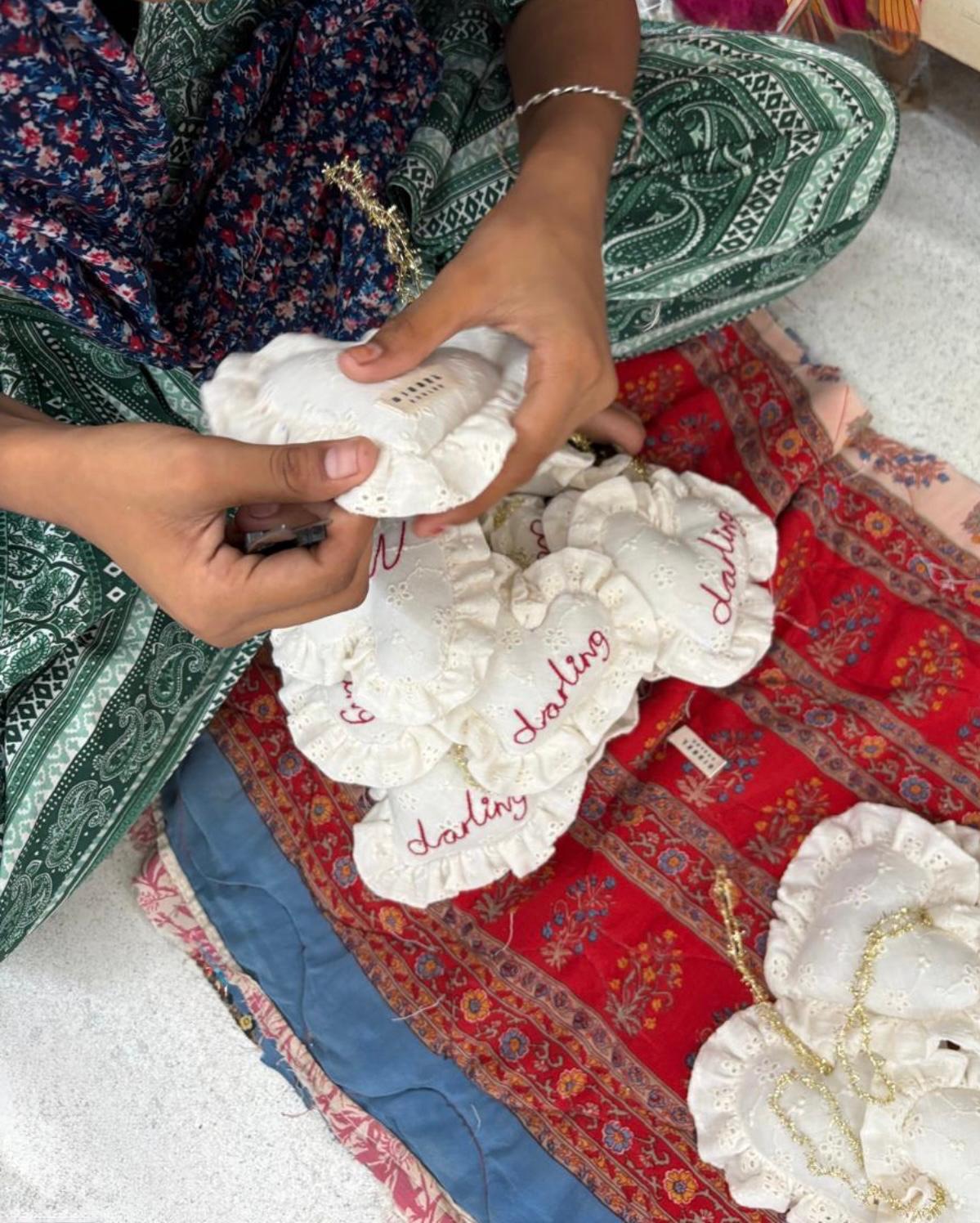 Sweetheart er lavet af rester af broderie anglaise og er let polstret. Den er pyntet med flæser langs kanten og fint broderet i rødt med det kærlige budskab “darling” – for at fejre en, du har kær. Denne ornament er perfekt til at pynte det mest festlige juletræ og sprede julestemning i hele hjemmet!
