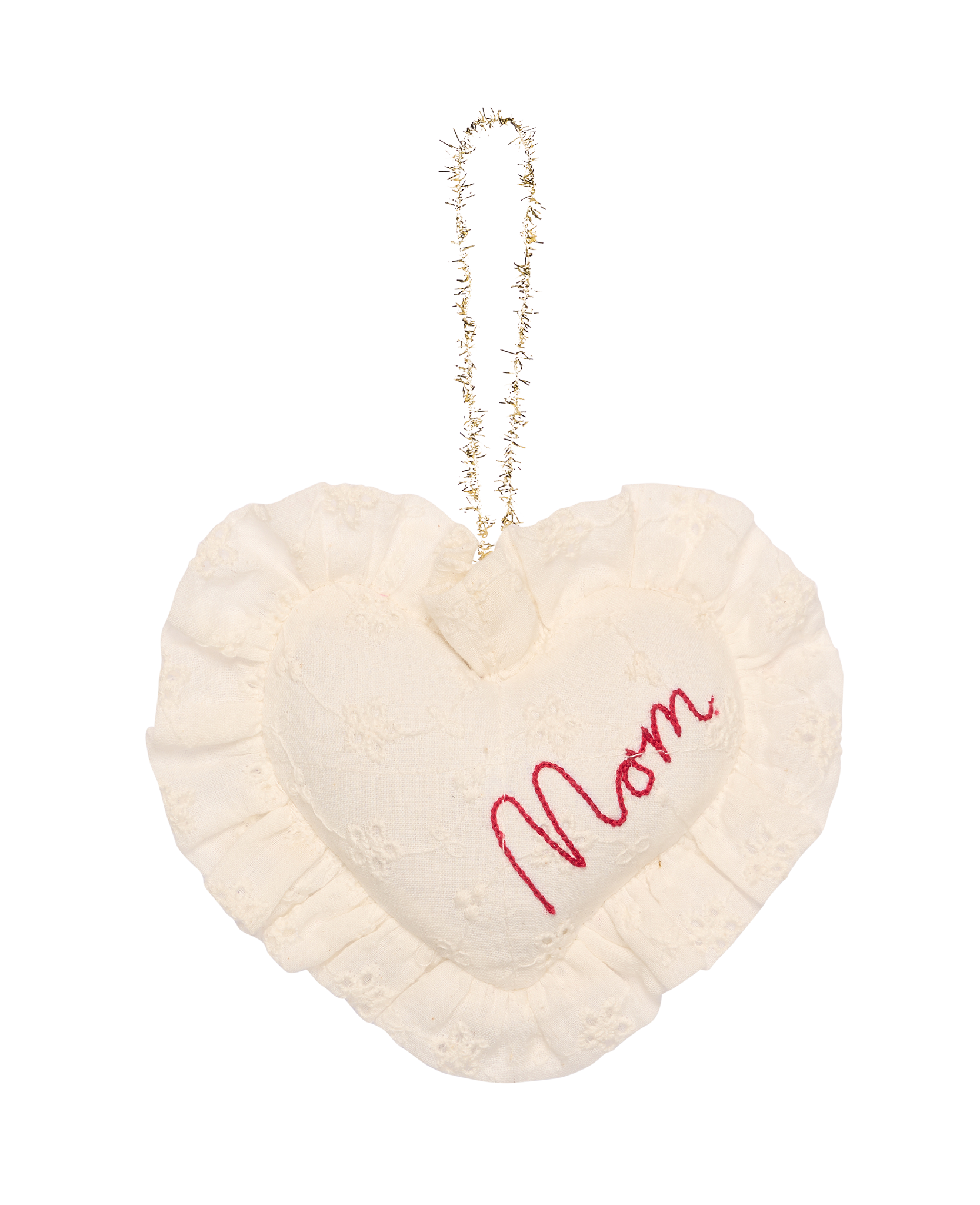Sweetheart er lavet af rester af broderie anglaise og er let polstret. Den er pyntet med flæser langs kanten og fint broderet i rødt med det kærlige budskab “darling” – for at fejre en, du har kær. Denne ornament er perfekt til at pynte det mest festlige juletræ og sprede julestemning i hele hjemmet!
